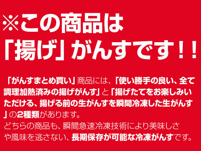 商品説明: 【商品内容】 そのまま食べられる「揚げがんす」 100枚入り(簡易包装)〈冷凍〉(送料込) 【規格】がんす100枚 【賞味期限】出荷日含む180日 【保存方法】冷凍 【原材料】魚肉、玉葱、パン粉、卵白、食塩、発酵調味料、砂糖、植物性たん白、とうがらし、焼にんにく/加工澱粉、調味料(アミノ酸等)、保存料(ソルビン酸)(一部に卵・小麦・乳成分・大豆を含む) ※「冷蔵」の商品と一緒にご注文された場合、別小口(荷物)になり別途送料がかかります。 ※簡易包装商品には、「のし」をおつけすることができません。カート内で「のし」を選択いただきましても、無効となりますので、ご注意ください。